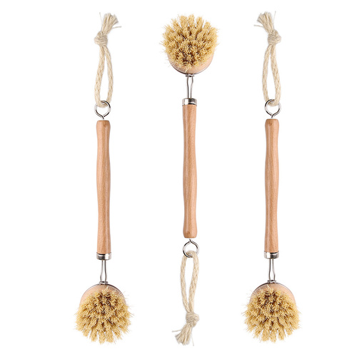 No plastic here! Scrub your dishes the eco way with this long-handled wooden dish brush with metal fixtures and stiff natural sisal bristles for extra scrubbing power.